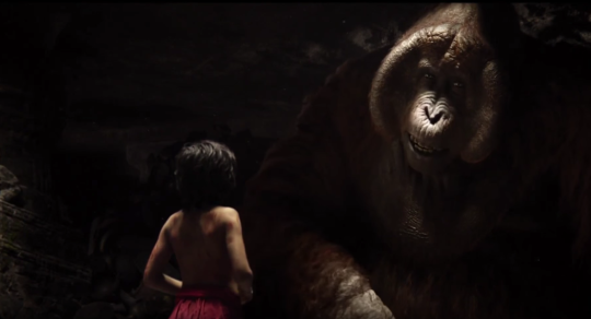 On arrive ensuite à la rencontre avec le roi Louis lorsque Mowgli se fait kidnappé par ces nombreuses sbires, en le balançant d’arbre en arbre comme une vulgaire branche. J’ai été impressionné par ce personnage qui se révèle véritablement imposant dans le film par rapport au dessin animé. Par ailleurs, le film fait également référence à sa fameuse chanson « Etre un homme comme vous ».