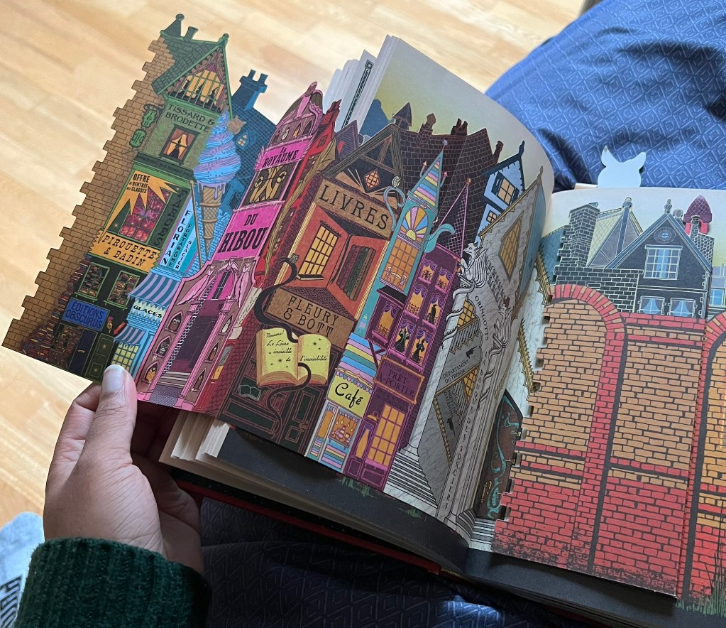 Pour ce qui est des différentes animations par Minalima, malgré quelques photos postées dans cet article, je te laisserais les découvrir pleinement pendant ta lecture si tu as l’occasion de te procurer cette édition. Le livre sera clairement à la hauteur de tes attentes amigo. Sa couverture reliée et ses dorures te donneront l’impression que l’ouvrage sort tout juste de la bibliothèque de Poudlard. La magie fait son effet dès l’ouverture. L’édition regorge de détails et de clins d’œil. Il faudra cependant juste faire attention car les illustrations, les pop-ups sont fragiles.