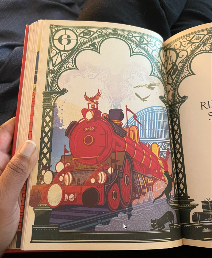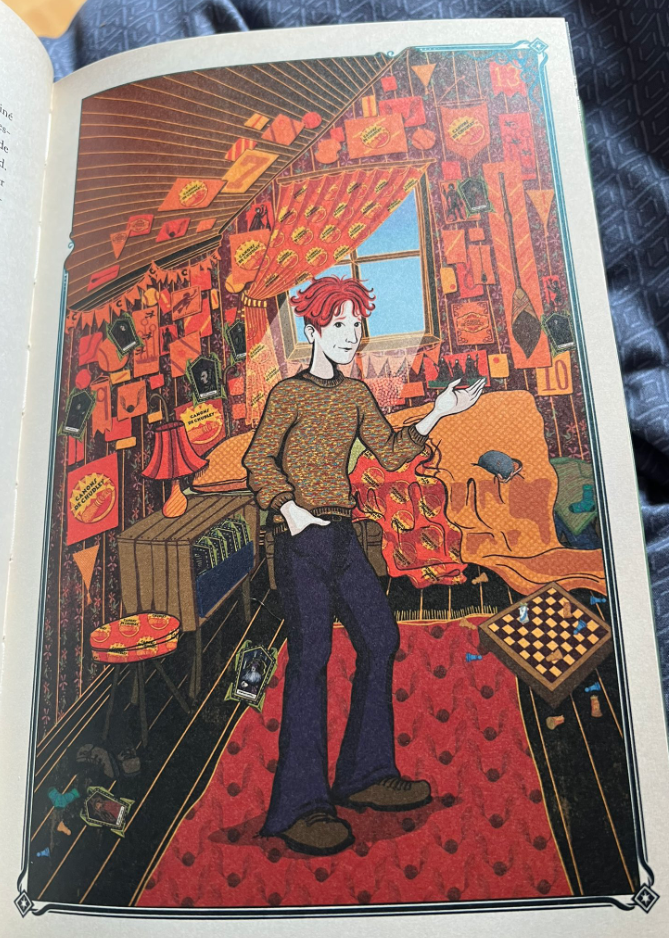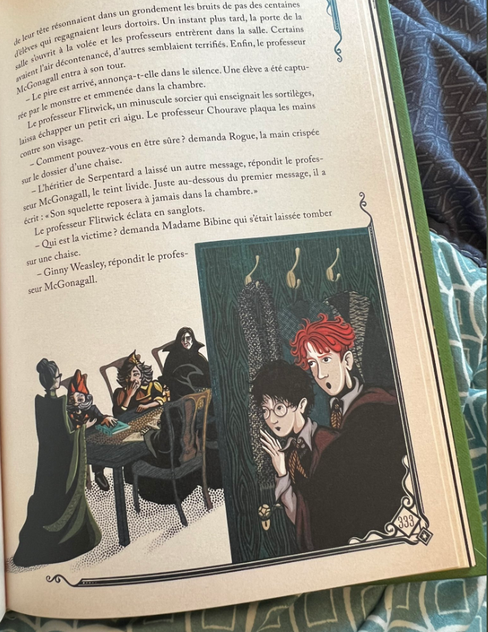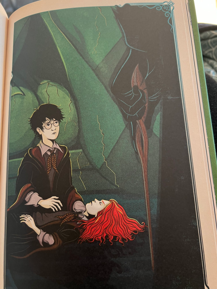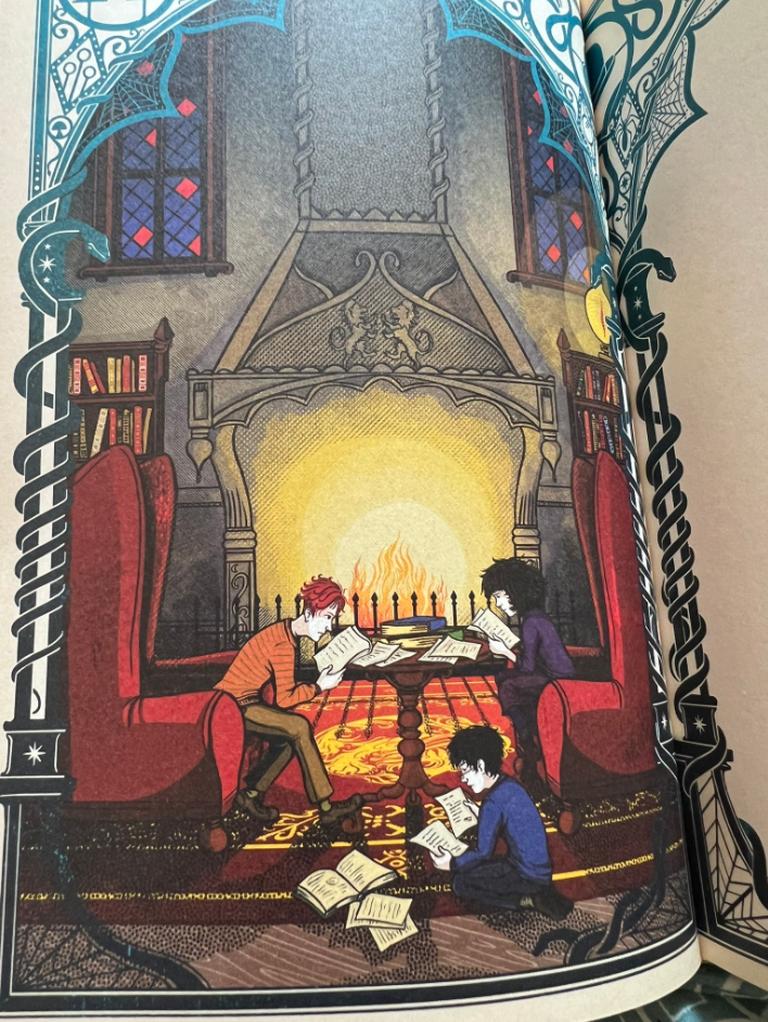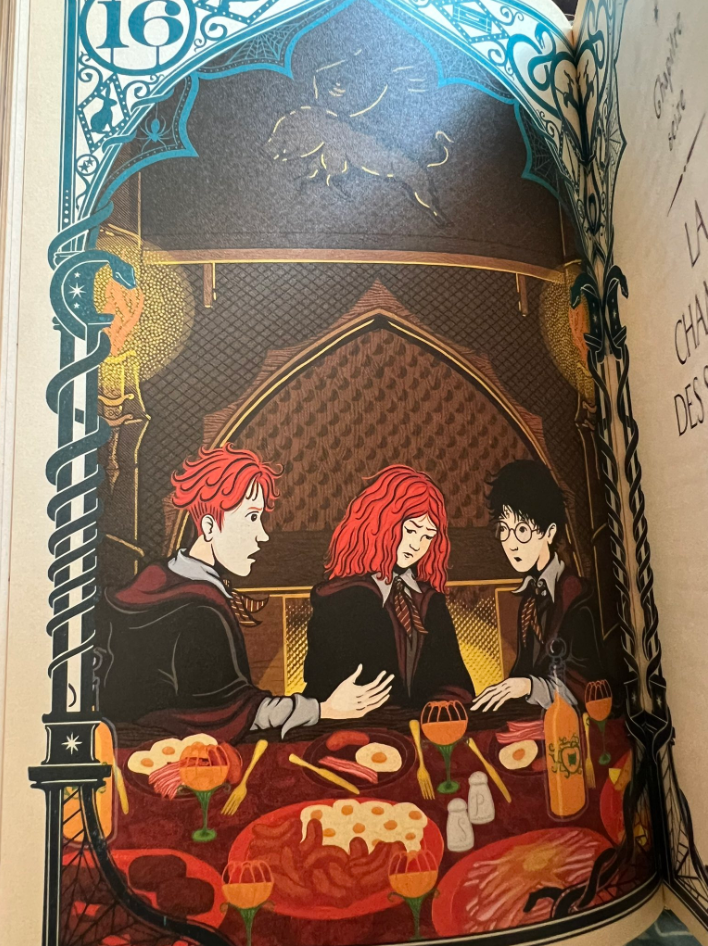 L’histoire est toujours la même évidemment mais les illustrations représentent le premier tome d’Harry Potter sous un nouveau jour. Et son petit frère, Harry Potter et la Chambre des secrets ne fait pas exception à la règle. J’ai tellement apprécié retrouver la chaleur et l’esprit de festivité chez la famille Weasley. Sans compter le personnage de Ginny Weasley qui est bien plus attachante dans les livres.