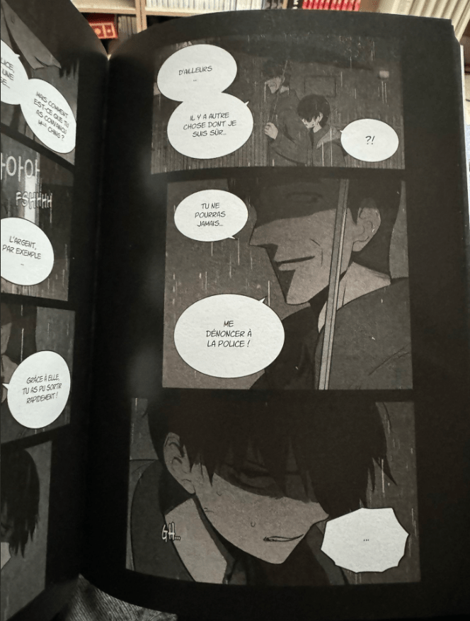 La lecture est toujours aussi glaçante. À chaque fois qu’on croit avoir devancé un peu le père, celui-ci a toujours un coup d’avance en se montrant plus cruel et plus sournois. Les planches où on le voit littéralement rire de façon diabolique montre à quel point la tension et le suspense ont atteint le meilleur niveau. En tant que lecteur, on croit avoir touché le bout et on se prend une nouvelle claque sans avoir rien vu venir.