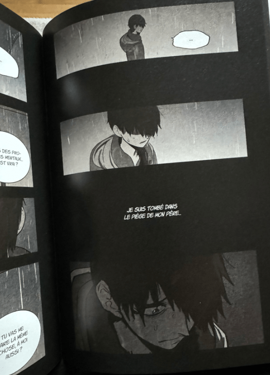 Dans cet avant dernier volume, on enchaîne les rebondissements et les jeux de manipulations entre le père et le fils. Un personnage secondaire fait aussi son apparition, le mercenaire Man-Deuk, une sorte d’homme à tout faire qui va seconder Jae-Hyeok pour avoir le fin mot de l’histoire sur l’accident qui a coûté à ses parents. À la fois meurtri et déterminé, il va chercher à savoir si le père de Jin est un assassin ou non.