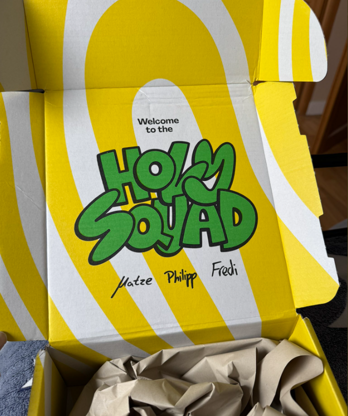 HOLY a été créée en avril 2021 par trois amis : Mathias Horsch (alias Matze), Frederick Jost (alias Fredi) et Philipp Nass (alias Philipp).
